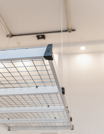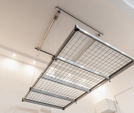 Differential motor technology automatically adjust the weight distribution throughout to keep garage ceiling storage rack nearly level even with heavy asymmetrically loading. The controller monitors weight on the platform and will prevent you from lifting/lowering items.